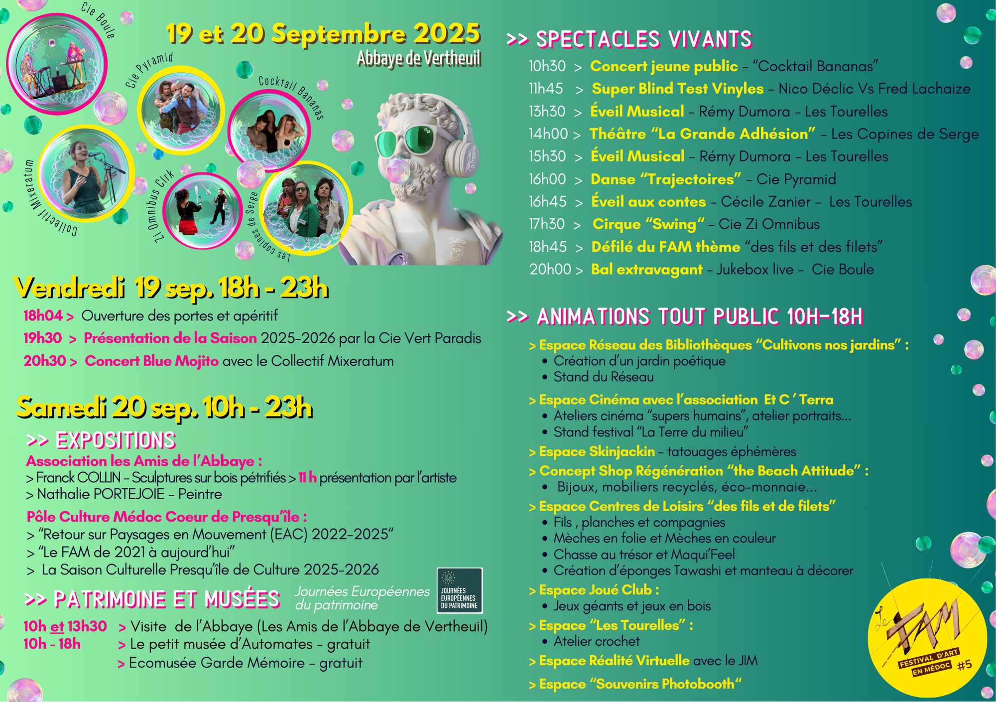 Merci à toute l'équipe du Pôle Culture Médoc Coeur de Presqu'Île et à tous ceux qui ont contribué à la réussite de cette édition du festival ! En route pour le FAM 2025 !